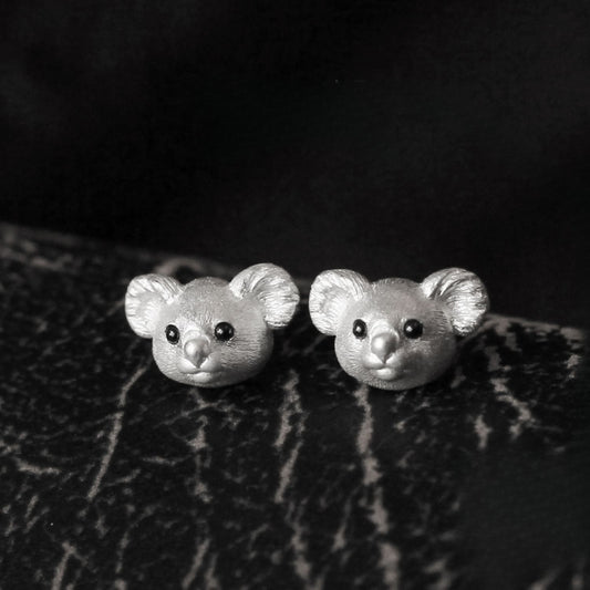 Charming Koala Earrings - Handcrafted 925 Silver Sculpture Jewelry