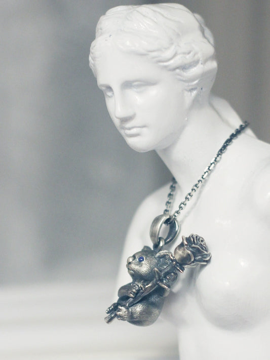 Rabbit Pendant - Handcrafted 925 Silver Bunny Figurine Necklace
