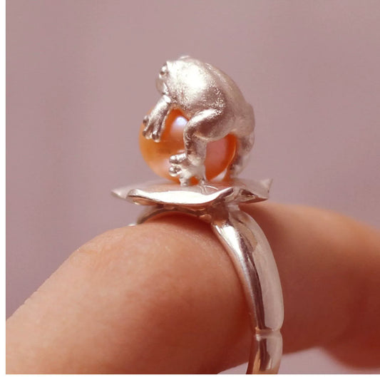 Frog Pearl Ring - Handcrafted Elegant 925 Silver Jewelry