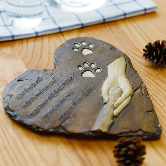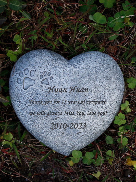 Pet Memorial Heart Plaque - Customizable Gravestone with Paw Prints
