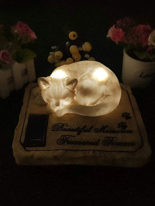 Cat Tombstone with Solar Light – Treasured Forever Keepsake