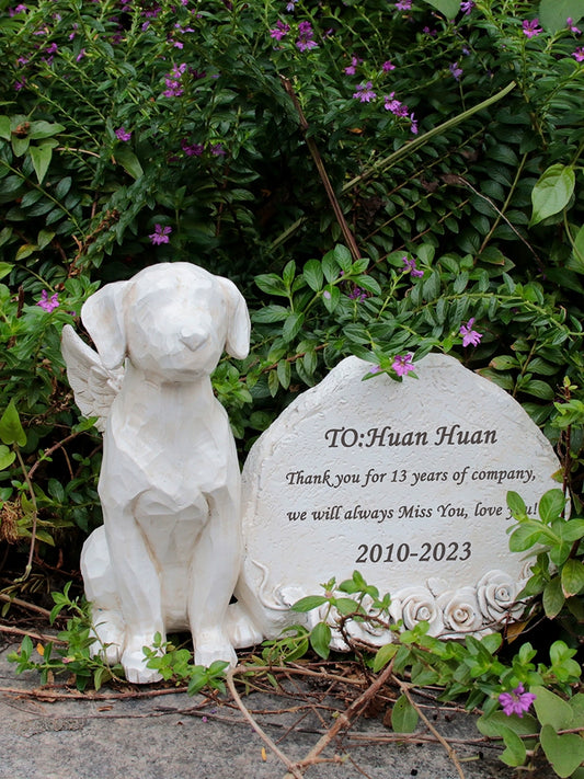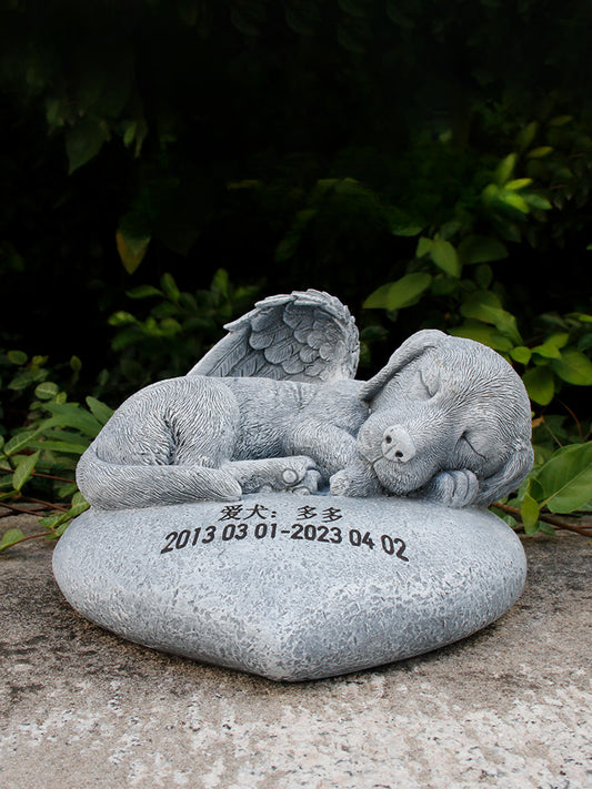 Dog Memorial Tombstone - Angel Dog Figurine with Custom Inscription
