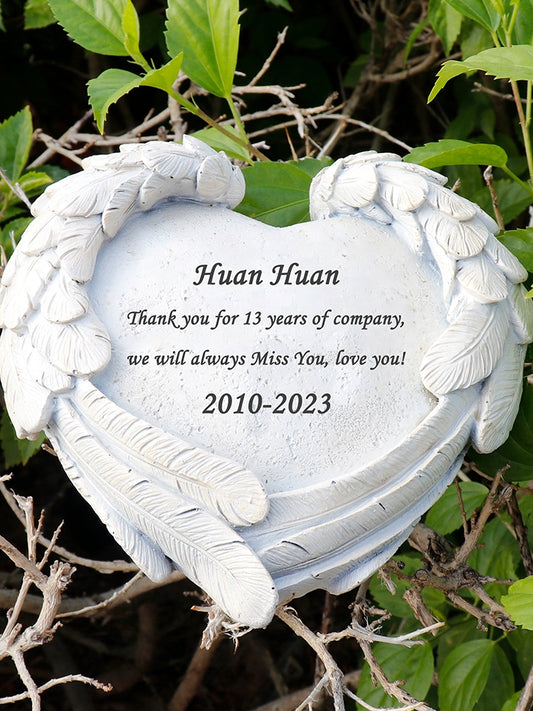 Heart Angel Wings Pet Memorial Stone - Customizable Engraving