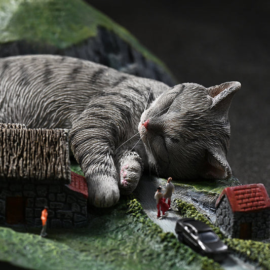 1/6 Attack Giant Cat Model - Whimsical Figurine in Miniature Landscape
