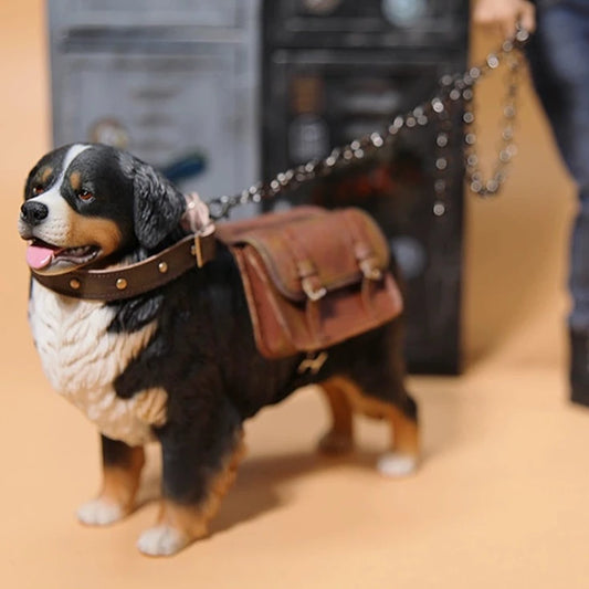1/6 Bernese Mountain Dog Model - Realistic Figurine with Saddlebag