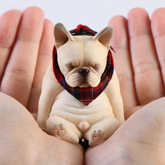 1/6 Charming French Bulldog Figurine - Resin Model with Plaid Scarf