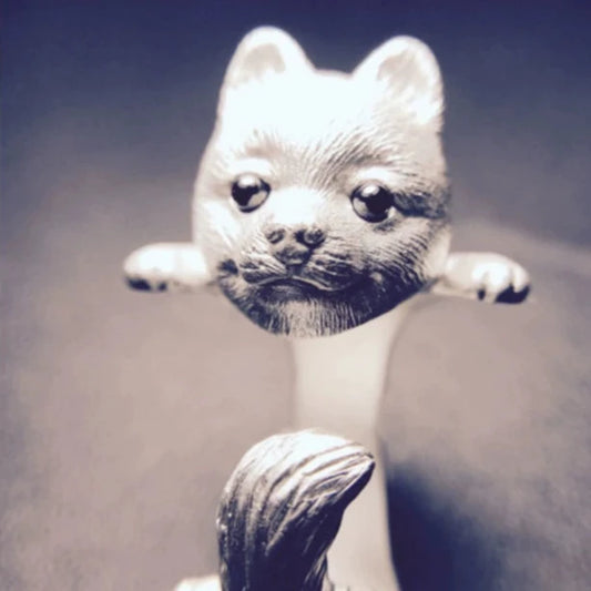 Adorable Pomeranian Ring - Handcrafted 925 Silver Dog Jewelry