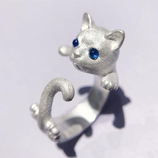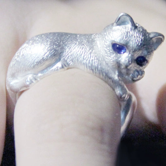 Full Body Cat Ring - Customizable Handcrafted 925 Silver Feline Jewelry