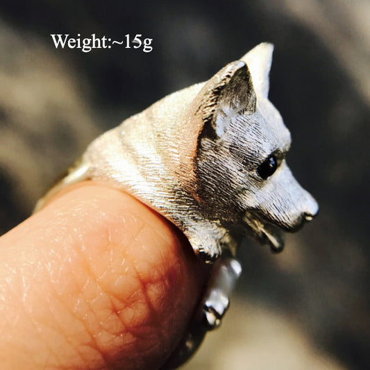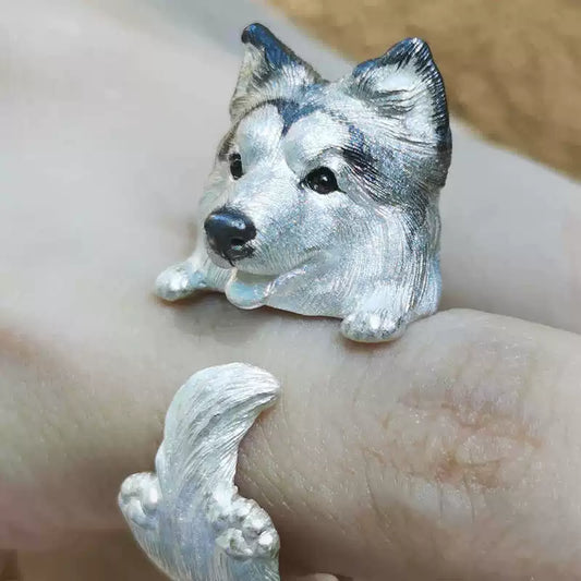 Husky Dog Ring - 925 Silver Husky Head Wrap-Around Ring