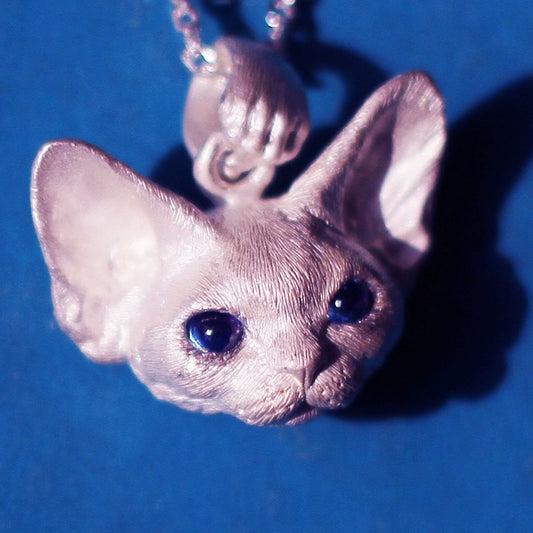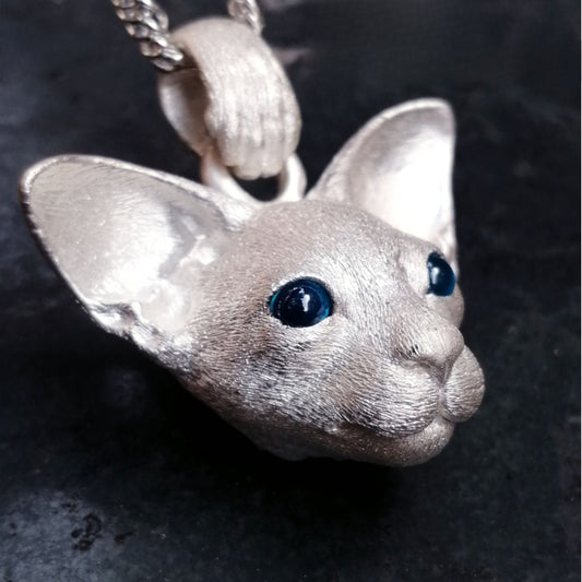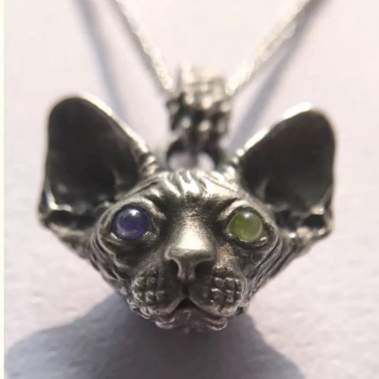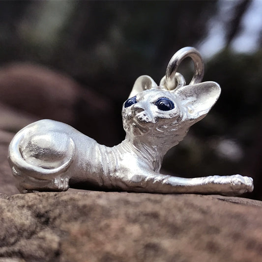 Sphynx Cat Sterling Silver Pendant - Unique Hairless Cat Jewelry