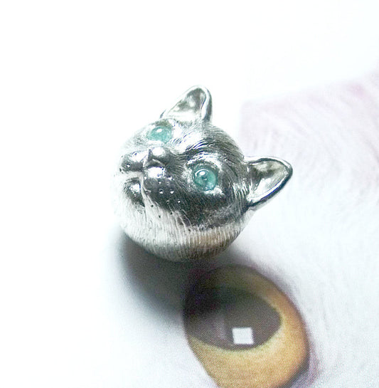 Sad Cat Pendant - Customizable 925 Silver with Gemstone Eyes