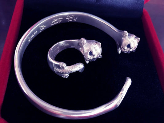 Cat Ring & Bracelet - Handcrafted 925 Silver Pet Jewelry