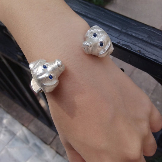 Bulldog Double-Headed Bracelet - Exquisite Sterling Silver Pet Jewelry