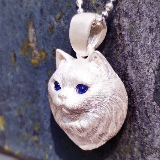 Ragdoll Cat Pendant - 925 Silver Handmade Jewelry with Gemstone Eyes