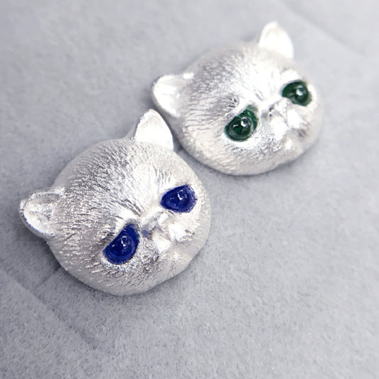 Adorable Kitten Face Earrings - Custom Sterling Silver Cat Studs
