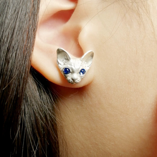 Sphynx Cat Earrings - Handcrafted 925 Silver Earrings