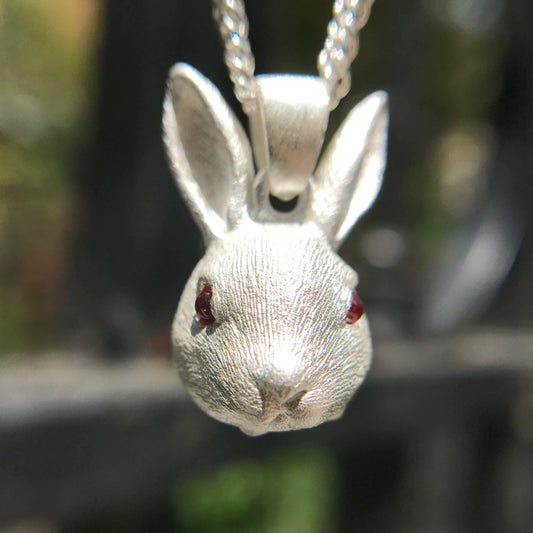 Rabbit Pendant Charm - Adorable Bunny Head with Garnet Eyes