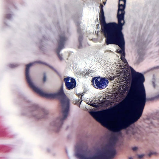 East Short Abbey Cat Pendant - Handcrafted 925 Silver Jewelry