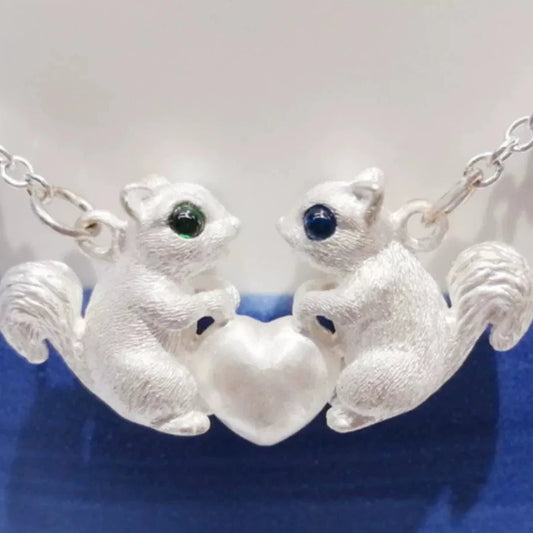 Squirrel & Apple/Acorn Figurine - Handcrafted 925 Silver with Gemstone Eyes