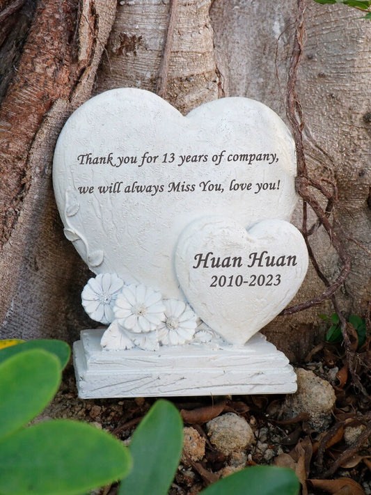Two-Heart Pet Memorial Tombstone - Customizable Pet Grave Marker