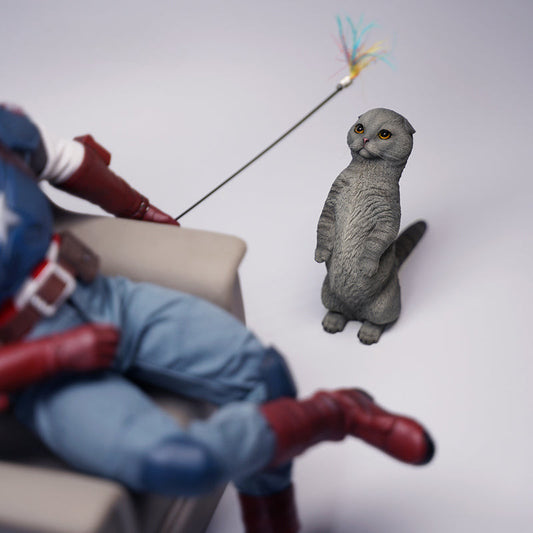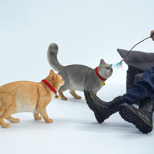 1/6 Scottish Fold Cat Model 2.0 - Adorable Figurine with Toy Wand