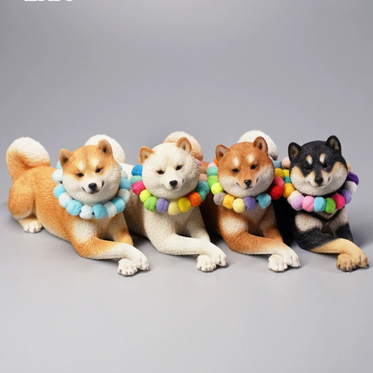 1/6 Prone Position Shiba Inu Model - Lifelike Canine Figurine Set