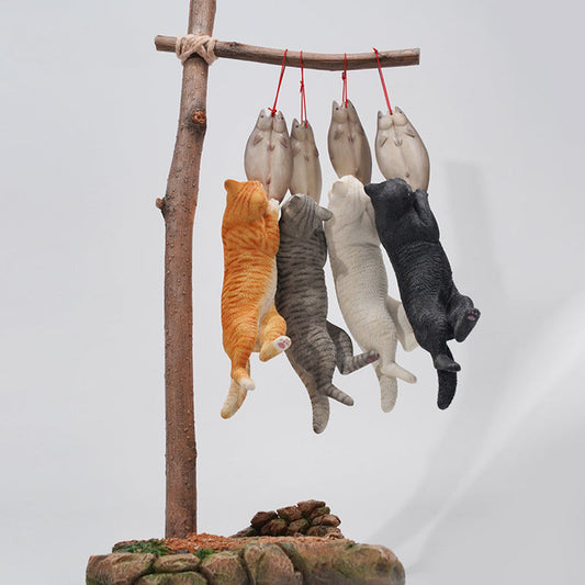 1/6 Hanging Cats Fishing Model - Playful Cat Figurines