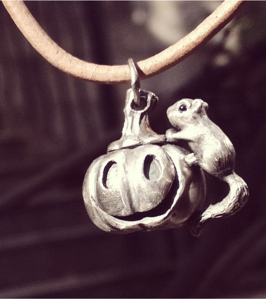Squirrel & Pumpkin Pendant - Hand-Carved 925 Silver Woodland Charm
