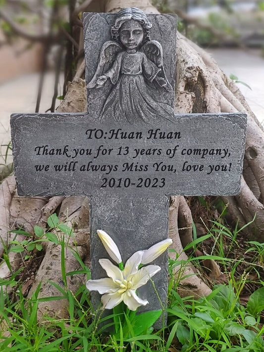Angel Cross Pet Memorial Stone - Customizable Tombstone
