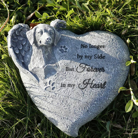 Angel Dog Heart Memorial Stone - Personalized Pet Tombstone