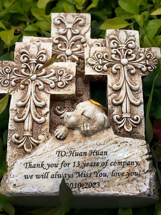 Angel Dog Memorial Cross - Pet Tombstone with Custom Engraving