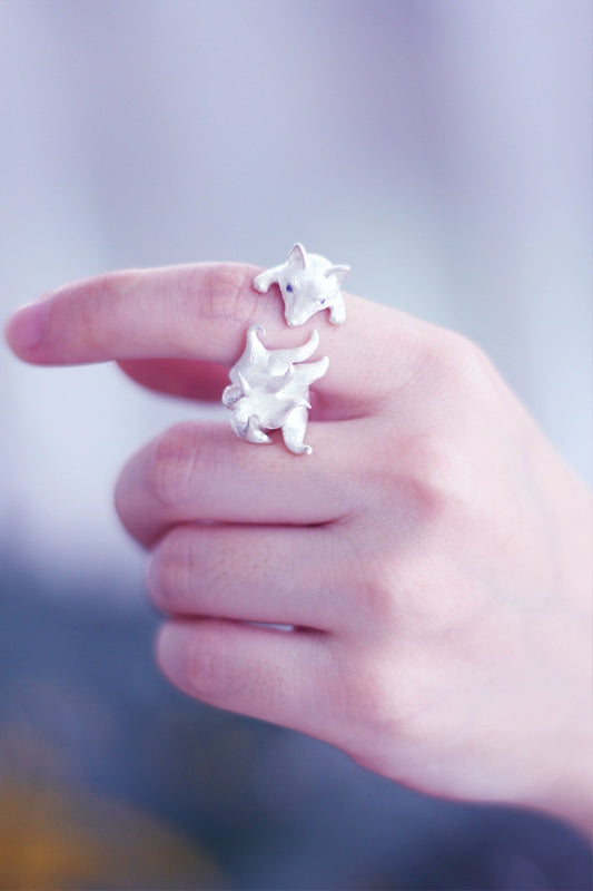 Nine-Tailed Fox Ring - 925 Silver Fox with Enchanting Gemstone Eyes
