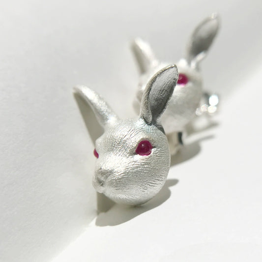 Silver Rabbit Earrings - Handcrafted 925 Silver with Ruby Eyes