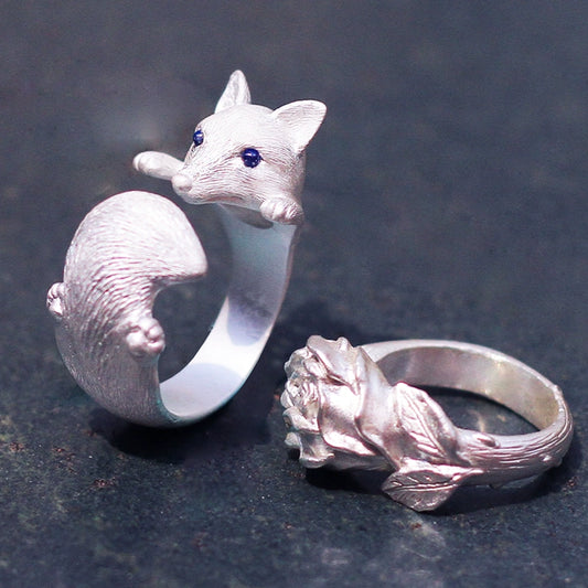 Fox and Rose Ring - Artisan Handcrafted 925 Silver Jewelry